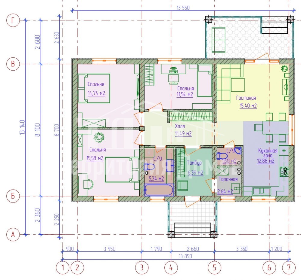 Материалы стен: Газобетонный блок, Кирпич, керамзитобетон, керамический блок и др.