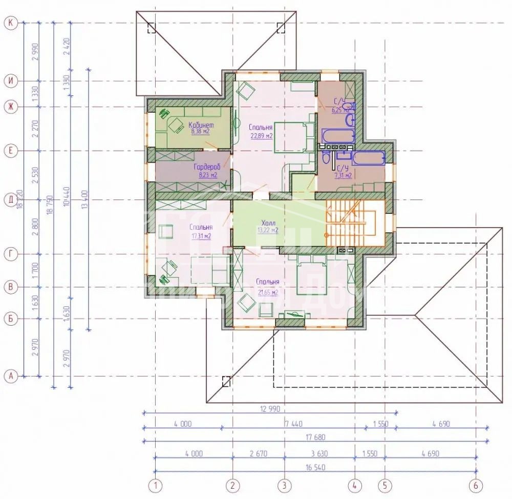 Тип крыши: Вальмовая